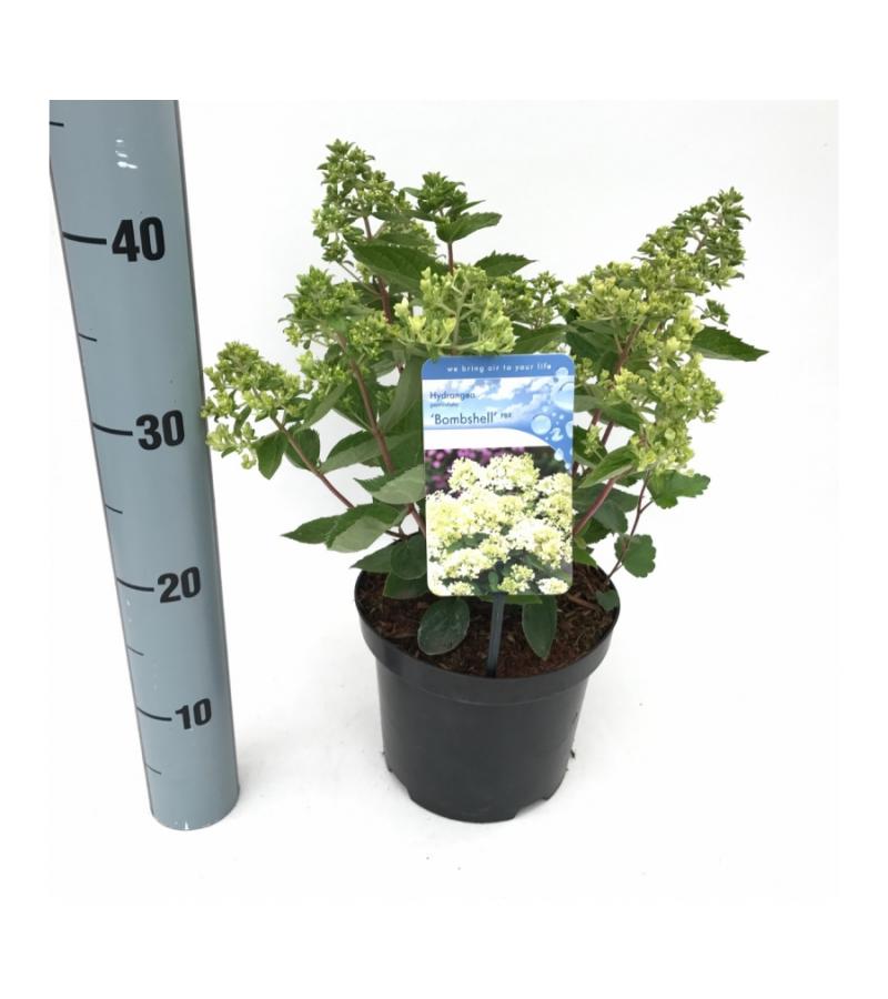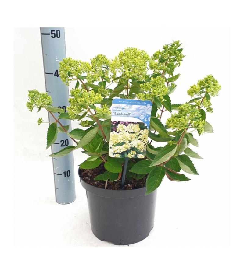 De Bombshell is een unieke tuinhortensia die zich kenmerkt door zijn compact blijvende hoogte. Met slechts 1m hoogte behoort deze pluimhortensia tot de dwerghortensia’s. Door de compacte, ook ronde groei is de Bombshell een zeer populaire toevoeging aan de Nederlandse tuinen, zeker ook als pot beplanting. De pluimhortensia bloeit in de zomermaanden met roomwitte betoverende pluimen die richting de herfst roze kunnen kleuren. Deze pluimhortensia zorgt voor nog meer genieten in uw tuin!