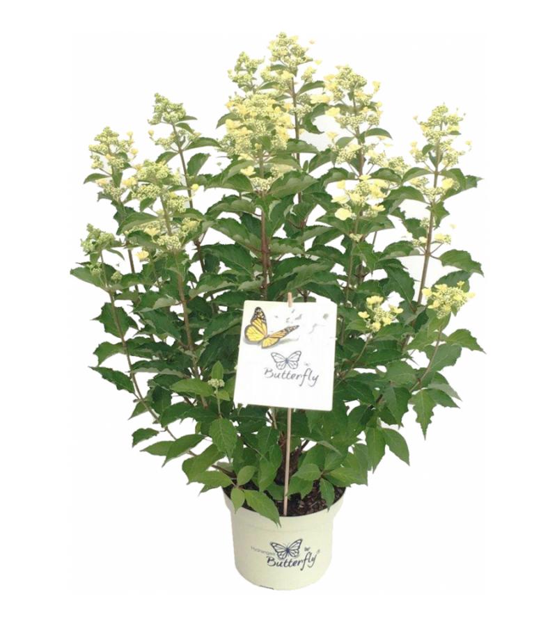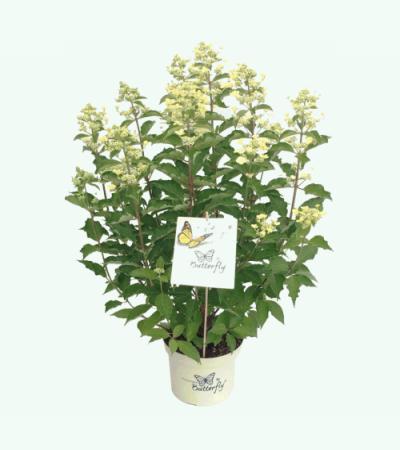 Deze mooie pluimhortensia is ook wel bekend als vlinderhortensia. Dat komt door de bijzondere eigenschap dat deze hortensia een lichte, zoete geur verspreid waar vele vlinders op af zullen komen. De enorme bloempluimen zijn prachtig om te zien en maken van deze pluimhortensia een zeer geliefd exemplaar.