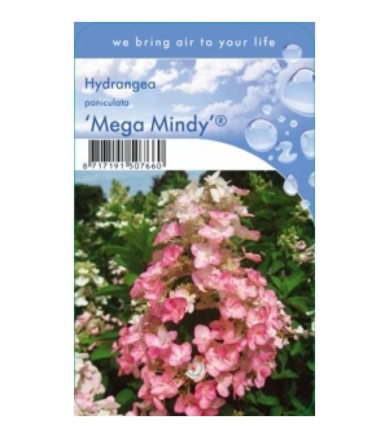 Mega Mindy is een sterke pluimhortensia met prachtige witte bloempluimen vanaf eind juli. In de nazomer zullen de witte bloempluimen een prachtig en intens roze kleur aannemen waardoor het een absoluut pronkstuk is in de tuin. De sterke takken zorgen ervoor dat onder welke weersomstandigheden dan ook, de bloempluimen trots in de wind blijven wuiven.