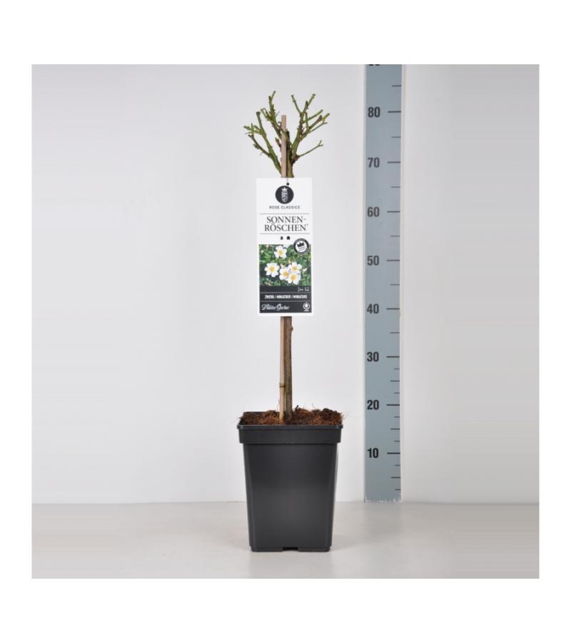 Miniatuurroos op stam (rosa "Sonnenröschen"®)
