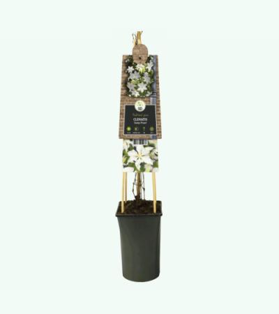 Deze witte bosrank bereikt een hoogte van ongeveer 3m op volwassen leeftijd. De prachtige, stervormige bloemen zijn wit van kleur met soms een zweempje roze. De bosrank houdt van een zonnige, beschutte plaats. Belangrijk is dat de voet afgedekt wordt tegen de volle zon. Een clematis is prachtig tegen een schutting, muur of pergola!