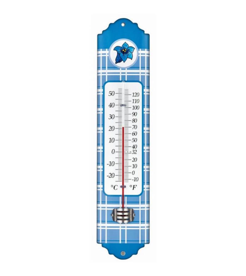 Metalen thermometer Alpen 29 cm blauw voor gebruik binnen en buiten