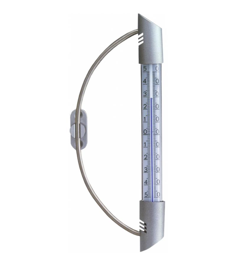 Vanuit uw luie stoel leest u de buitentemperatuur af met deze moderne kunststof vensterthermometer. De zilverkleurige thermometer is geplaatst in een sierlijk metalen houder. De schaalverdeling loopt van -50 tot +50 graden. Te koud om naar buiten te gaan? Vanuit uw verwarmde kamer blijft u precies op de hoogte van de buitentemperatuur!