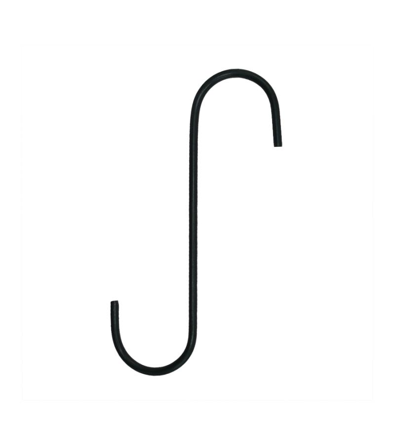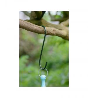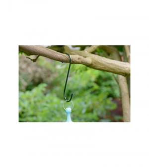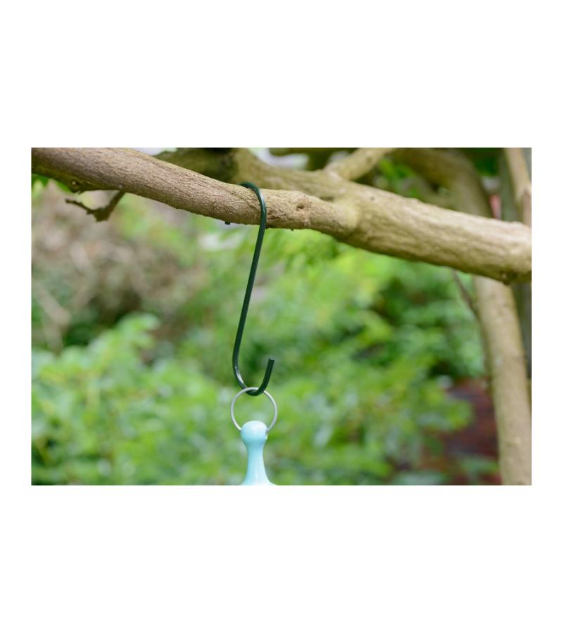 Onmisbare haak in een S vorm van geëpoxeerd staal in de kleur groen om een hangketting met plantenbak of band aan op te hangen.