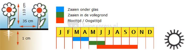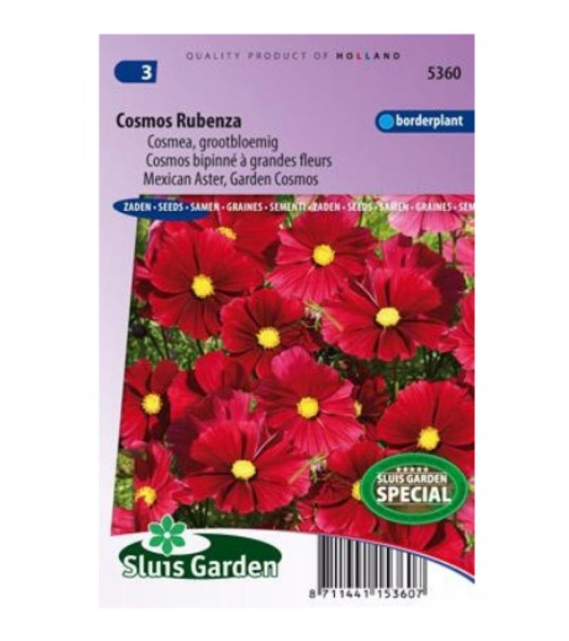 De Rubenza is een eenjarige plant met een hoogte van ongeveer 110 cm. Het is een mooie snijbloem voor leuke boeketjes of staat sfeervol als achtergrondbeplanting in de tuin. U kunt deze Cosmos bloem, als de omstandigheden het toelaten, al vanaf de maand april in de volle grond op plaats van bestemming zaaien. Wanneer u de uitgebloeide bloemen zo nu en dan zal verwijderen, dan kunt u tot en met oktober genieten van deze prachtige bloemen!