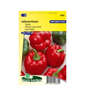 De California Wonder heeft een opbrengst van circa 10 vruchten per plant. Paprika heeft veel warmte nodig waardoor u het beste kunt gaan zaaien onder glas op een zaaibed of direct in 10 cm potjes. Na opkomst moeten de zaailingen verspeend worden en later in een koude kas of buiten op een warme beschutte plaats uitgeplant worden. De paprika is ook geschikt voor de teelt in potten en bakken.