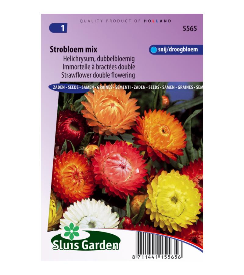 Een kleurrijk mengsel met veel verschillende kleuren! De Strobloem Dubbelbloemig gemengd is een plant geschikt voor borders, perken of als achtergrondbeplanting, maar wordt toch het meest gebruikt als droogbloem en als snijbloem.