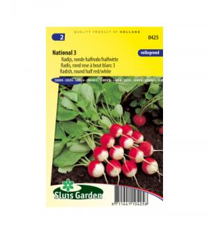 De National 3 zijn een halfrode/halfwitte radijsjes die verschillende mineralen als kalium en fosfor bevatten en knapperig, beetje pittig van smaak zijn. De radijs is niet alleen een smakelijke groente, maar ook eentje die gemakkelijk te telen is. Een paar weken na het zaaien kunt u ze al oogsten!