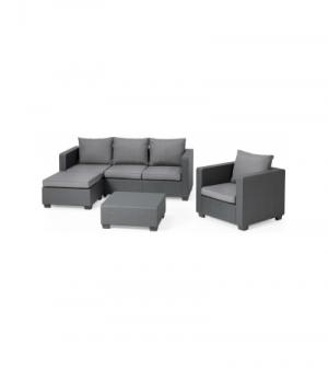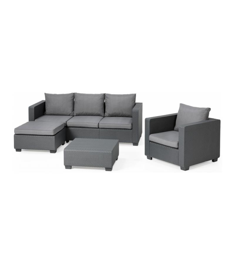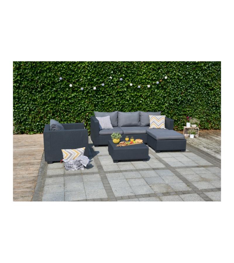 Het Salta chaise loungeset bestaat uit een driezitsbank en een loungestoel. De sofa is gecreëerd met een hocker en een tafeltje maakt dit heerlijke loungeset compleet. De meubels uit de Salta serie zijn gemaakt van kunststof; een zeer geliefd materiaal omdat het zeer makkelijk schoon te houden is en tevens zeer weerbestendig is. Het Salta loungeset is een praktische, maar bovenal een mooie aanwinst voor uw tuin!