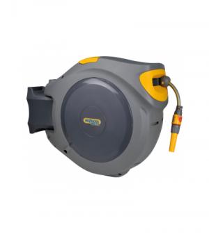 Deze tuinslanghaspel is uitgerust met een Flowmax slang met een diameter van 15mm. Deze grotere diameter zorgt voor een grotere doorstroom capaciteit van wel 15% ten opzichte van een 9mm tuinslang. De slanghaspel is tevens voorzien van een automatisch oprolmechanisme dat ervoor zorgt dat uw tuinslang eenvoudig en makkelijk opgerold wordt zonder dat u hier moeite voor hoeft te doen. De slanghaspel wordt geleverd inclusief bijbehorende koppelmaterialen, tuinspuit en bevestigingsmateriaal voor bevestiging aan de muur.