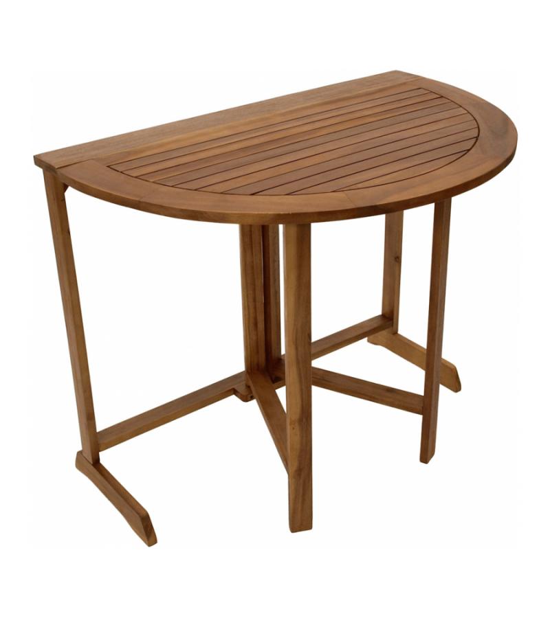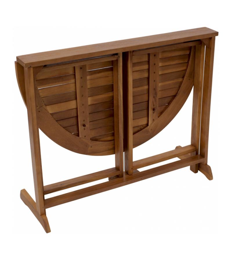 De halfronde opklapbare houten tuintafel is gemaakt van acaciahout voorzien van het FSC keurmerk. Acaciahout behoeft weinig onderhoud, een beschermde olie kunt u gebruiken om de bruine kleur van de tafel te behouden. Wilt u echt een uniek karakter dan kunt u de tafel op natuurlijke wijze laten vergrijzen.