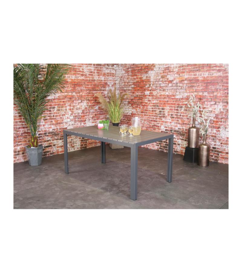 Deze tuintafel heeft een frame waarvan de kleur antraciet is, het tafelblad van deze tafel is ook antraciet van kleur. Het blad van dit product samen met het frame zorgen dus voor een solide kleur waardoor het product prettig oogt en gemakkelijk te combineren is. Het frame van dit product is gemaakt van aluminium, hierdoor blijft dit tafeltje ook nog enigszins licht van gewicht en daardoor is hij makkelijk te verplaatsen naar de ideale plek bij jou thuis.