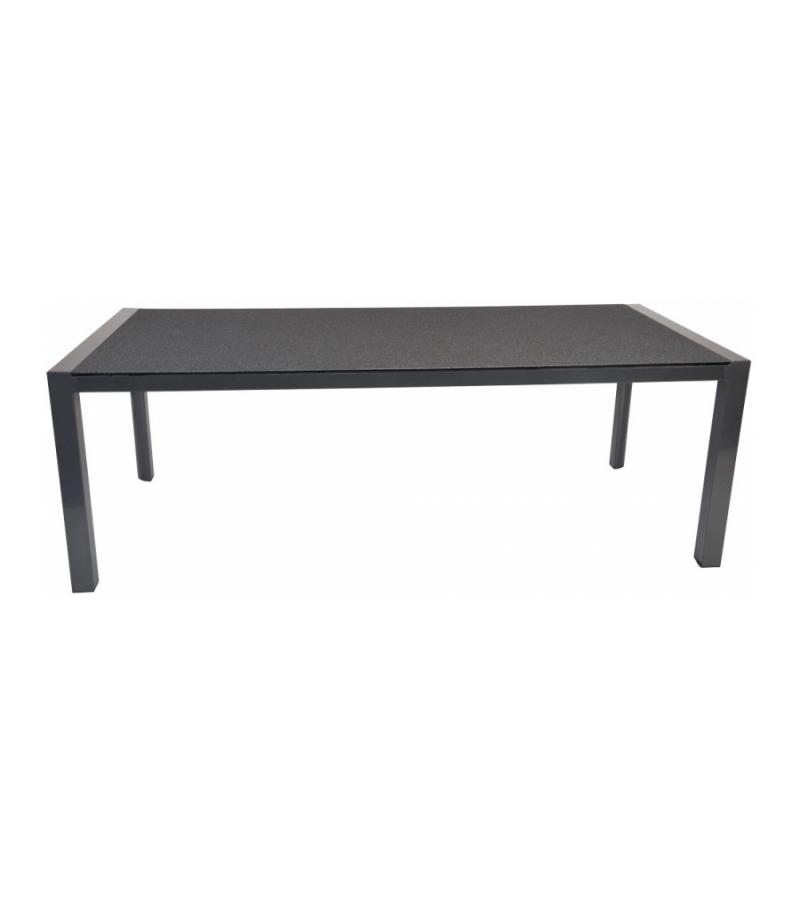 Kom gezellig met het hele gezelschap bij elkaar op een zomerse dag aan deze mooie tuintafel Mojito Negro 220 cm! De tuintafel heeft een lengtemaat van 220 centimeter waardoor hij voldoende plaats biedt aan zes stoelen, mocht uw gezelschap groter worden kunt u altijd extra stoelen aanschuiven aan de koppen. De tafel heeft zijn prachtige uiterlijk te danken aan het antracietkleurige, spraystone tafelblad. Spraystone is een duurzaam en slijtvast materiaal welke qua gevoel en uiterlijk niet onder doet voor natuursteen. Het geïmiteerde materiaal maakt de tuintafel prachtig om te zien, en toch betaalbaar.