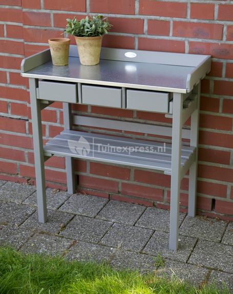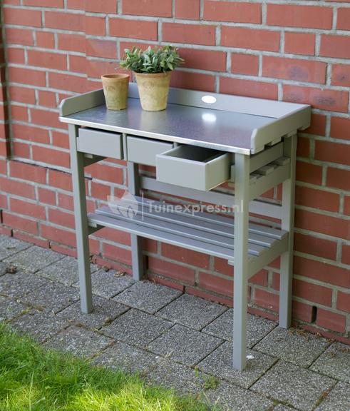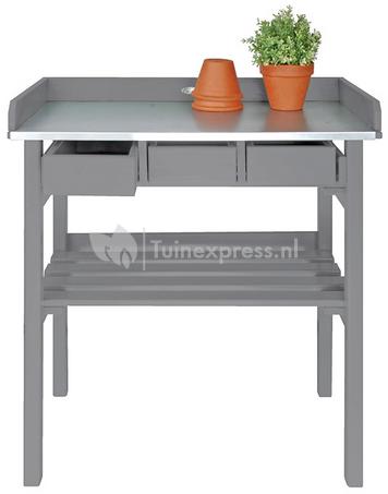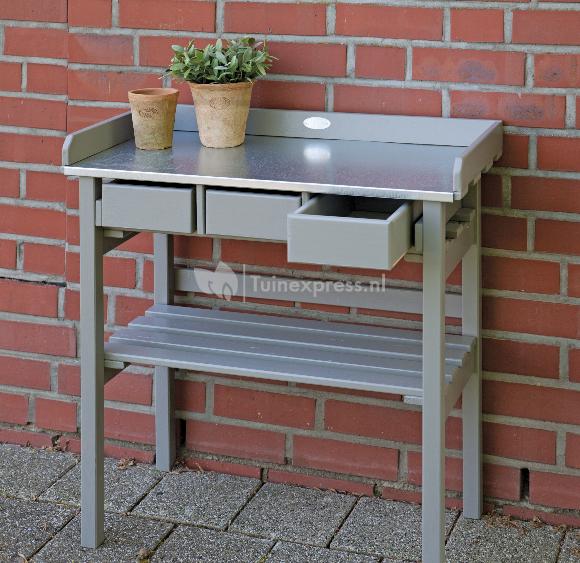 Voor gebruik in huis, op terras of in de kas is deze tuinwerktafel met lades wgrijs uitstekend geschikt. Het solide houten frame wordt gecombineerd met een bovenblad van zink. De tafel is voorzien van 3 handige lades, hier kunt u uw oppotbenodigheden in bewaren. De tafel is ook leuk om als sidetable te gebruiken in huis.