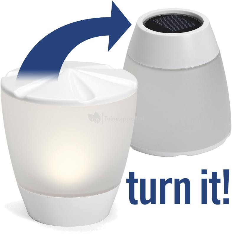 Gezelligheid en licht aan tafel. Heerlijk natafelen ‘s avonds of wat drinken in de tuin na een warme zomerdag. De Led Turner van Konst Smide geeft subtiel licht, maar creëert direct sfeer. Laad het lichtje overdag op en draai het bij schemering om voor het effect van een gezellig waxinelichtje. De hoeveelheid licht is daarmee dan ook vergelijkbaar. De Led Turner is het hele jaar door te gebruiken: laad zelfs op met gewoon daglicht. Een tuinfeest in de winter bijvoorbeeld? Glühwein, Konst Smide en een tuinkachel; aan sfeer zal het niet ontbreken!