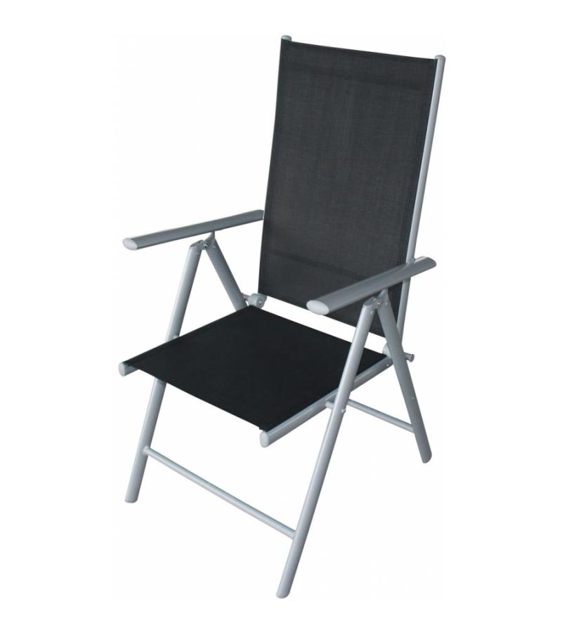 Het set bestaat uit 4 klapfauteuils met handige armleuningen, die zijn voorzien van een zwarte stoffen bekleding. Het onderstel is vervaardigd uit robuust en duurzaam grijs aluminium, en de rugleuning is in 7 verschillende standen verstelbaar voor nog meer comfort. Daarnaast is er een tafel met een afmeting van 70x70cm meegeleverd, die is gemaakt van sterk en weerbestendig polywood.