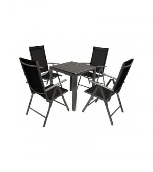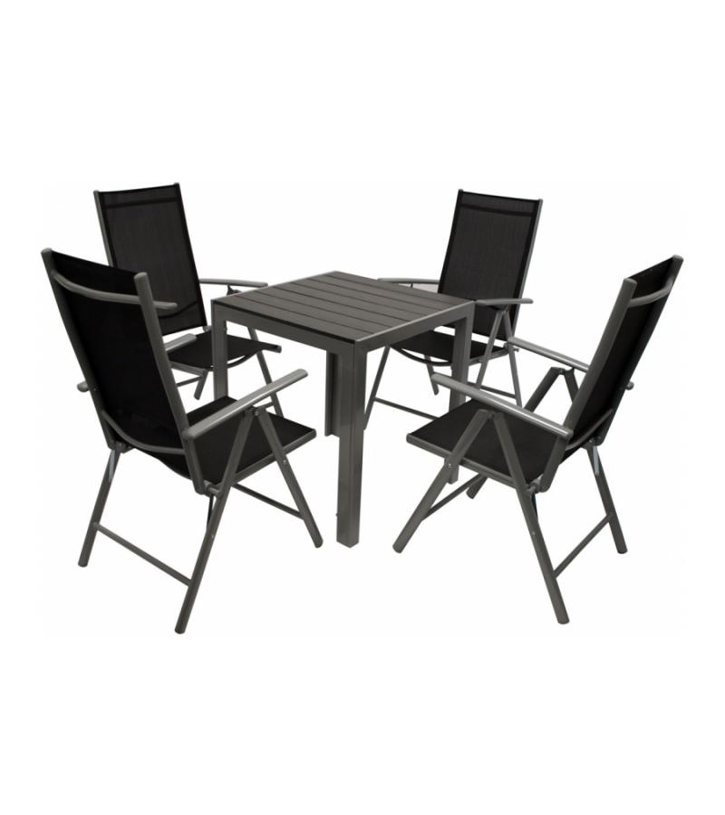 Set van 5, aluminium, polywood, kunststof stof zwart