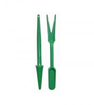 Het verspeenset helpt u bij het verspenen van jonge plantjes. Het set bestaat uit een verspeenpen en een verspeenvork waarbij de andere zijde is voorzien van een klein schepje. De vork gebruikt u om de aarde los te maken waarna u ze kunt optillen met de vork of het schepje aan de achterzijde. De verspeenpen gebruikt u om een gaatje te maken op de plek van bestemming zodat deze de juiste diepte en grootte heeft om zaailingen te plaatsen.