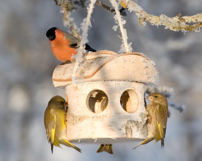 Een houten voederhuis, om onze kleine gevederde vrienden in de winter een handje te helpen. U vult het voederhuisje met vogelzaad en zet deze op tafel of u hangt het huisje aan een tak van een boom. U krijgt wellicht een mooi aanzicht van al die kleine vogeltjes die wat lekkers komen snoepen.