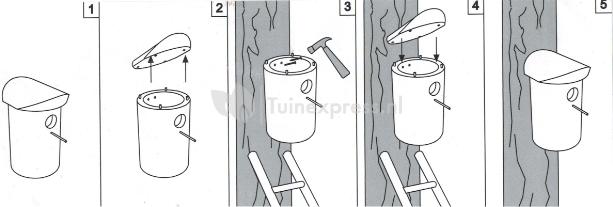 Het huisje is geschikt voor o.a. koolmees, kuifmees, pimpelmees, huismus, veldmus en boomklever.