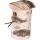 Het vogelhuisje berk klein kan op 2 manieren vastgemaakt worden, u kunt hem ophangen aan het touw of aan een boomstam bevestigen. Doordat het huisje van berkenhout is gemaakt geeft dit de vogels een goede bescherming tegen roofdieren. Het camoufleert namenlijk erg goed als u het huisje in een boom zou ophangen. Het volgelhuisje heeft een deksel zodat u deze makkelijk schoon kunt maken.
