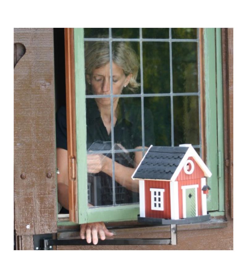 Door het voederhuisje op deze zwenkarm voor het raam te monteren kan het gemakkelijk opzij worden geschoven om het raam te openen wanneer het tijd is om het schoon te maken of bij te vullen. De zwenkarm is geschikt voor de meerderheid van de modellen van multiholk en voederhuizen door middel van de montageplaat met de vijf schroefgaten.