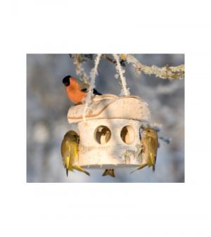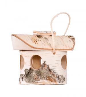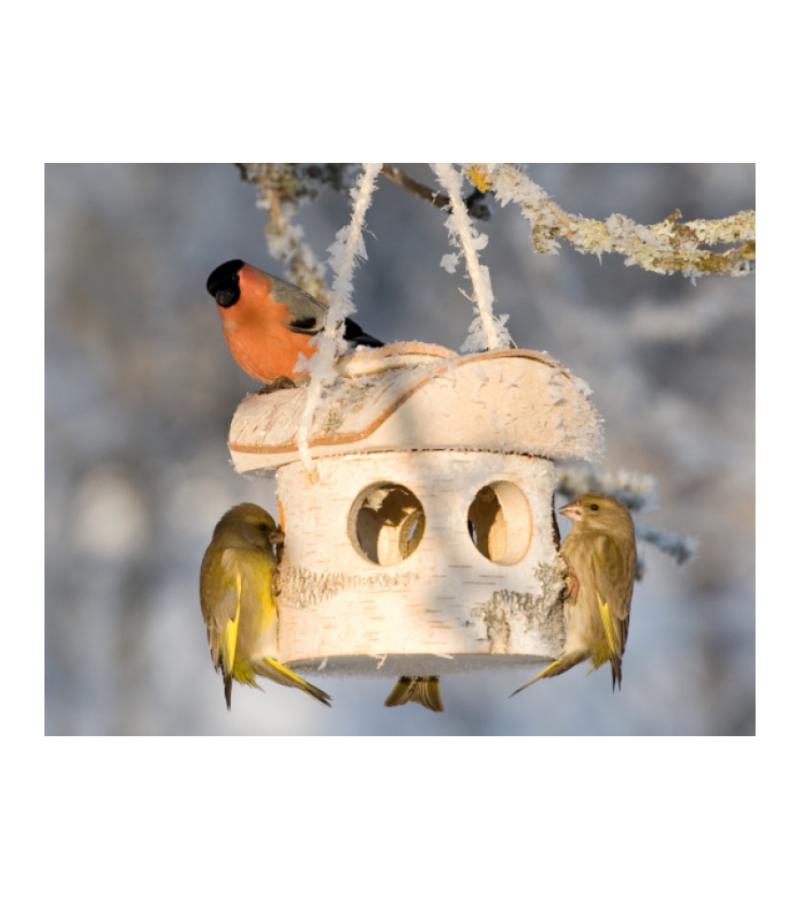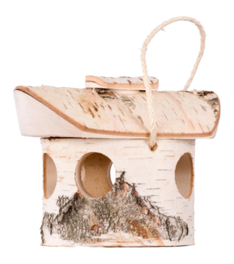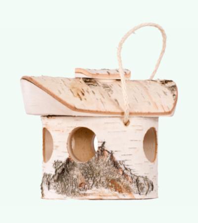 Een houten voederhuis, om onze kleine gevederde vrienden in de winter een handje te helpen. U vult het voederhuisje met vogelzaad en zet deze op tafel of u hangt het huisje aan een tak van een boom. U krijgt wellicht een mooi aanzicht van al die kleine vogeltjes die wat lekkers komen snoepen.