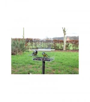 Het transparante vogel voederhuisje wordt geleverd met gepoedercoat stalen spies zodat u het voederhuisje op ieder gewenste plek in tuin kunt plaatsen. Heeft u een balkon? U kunt de spies uiteraard ook in een grote bloempot plaatsen.