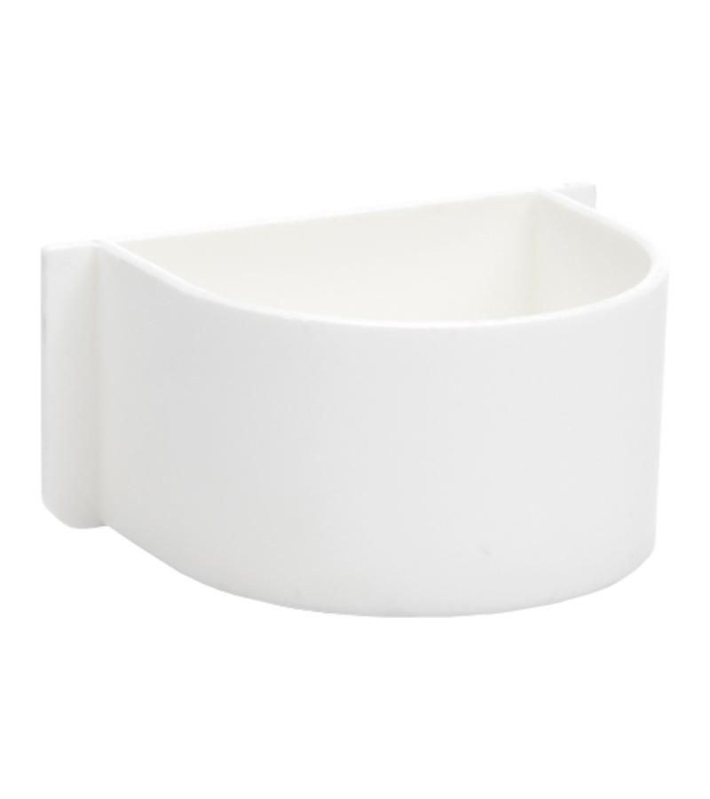 Een halfronde eet of drinkbak voor de grotere vogelsoorten om neer te zetten in de kooi. Kleur: wit.