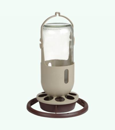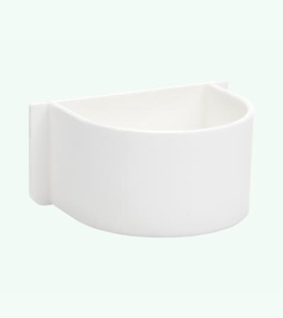 Een plastic eet of drinkbakje voor diverse vogelsoorten. Makkelijk op te hangen door de haakjes aan de achterzijde van het bakje. Kleur wit