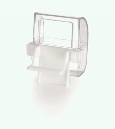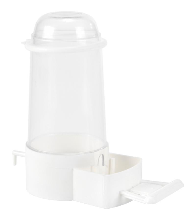 Een plastic weekend drink en voeder fontein, breed voor vogelkooien.