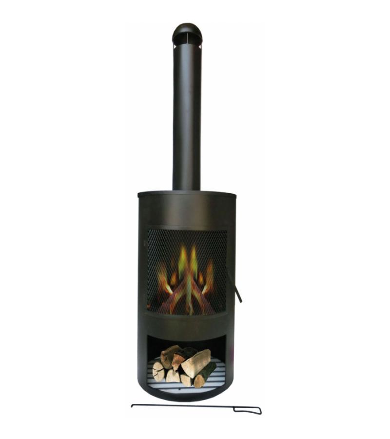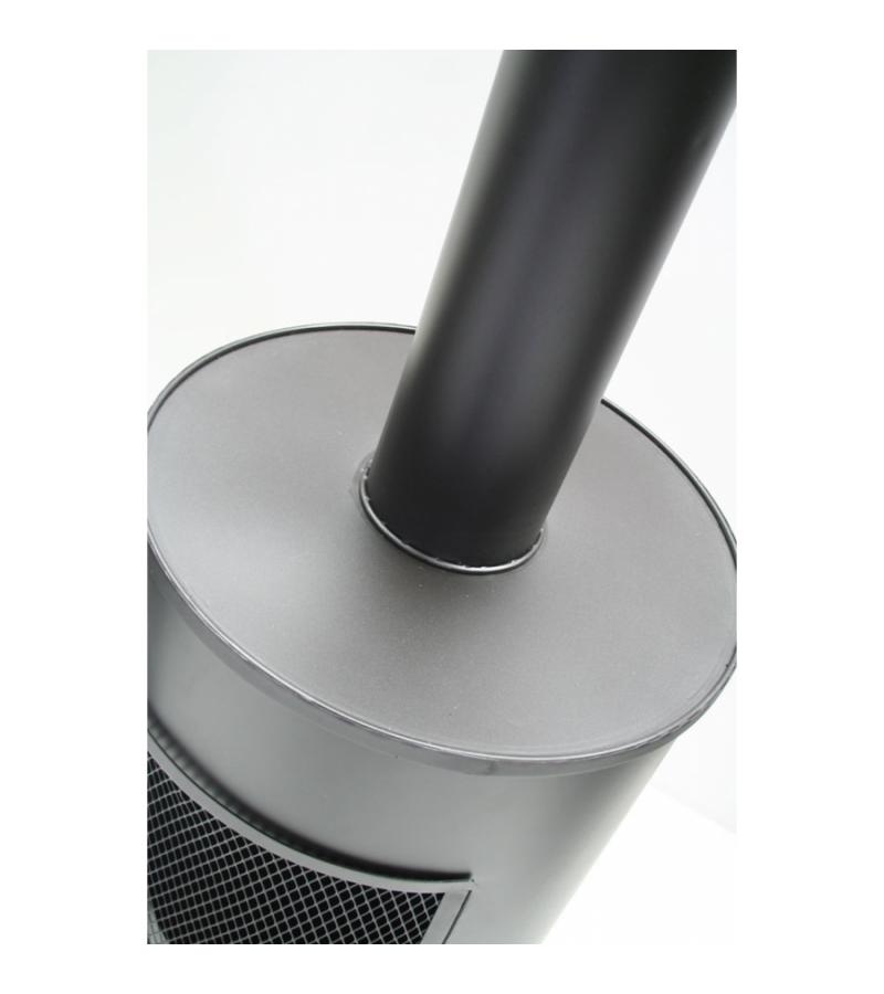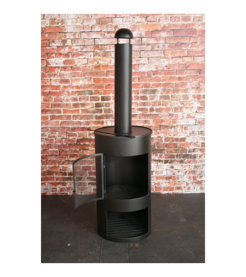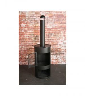 buitenkachel olievat met houtopslag