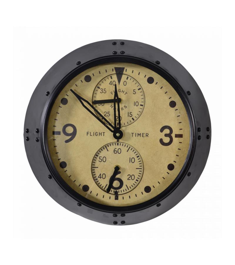 De Wandklok Durham is retro industrieel. Ook is de Wandklok Durham geschikt voor bijna elke ruimte door zijn rustige uiterlijk, maar deze wandklok zal niet verdwijnen in de inrichting. Wandklok Durham heeft een metalen zwarte rand en een goud gekleurde binnenkant. In de binnenkant zie je 2 kleinere klokken in afgebeeld.