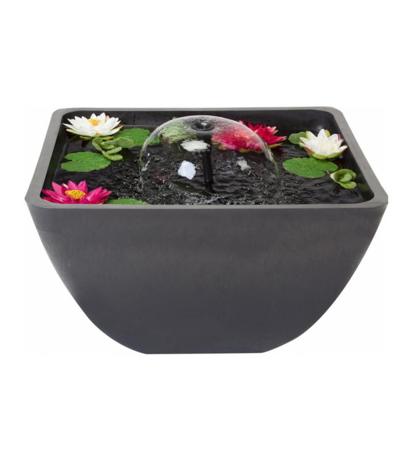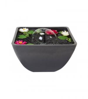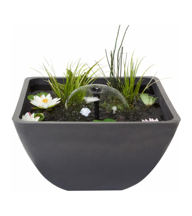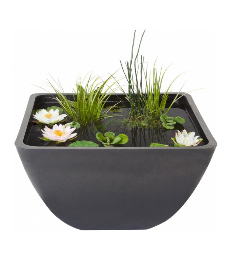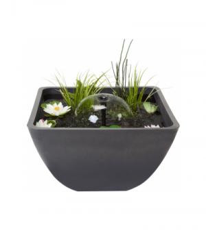 De Fountain Pond is gemaakt van licht materiaal, polystone, waardoor u de vijver moeiteloos kunt verplaatsen. De terrasvijver wordt geleverd met fonteinpomp en plantmand waarmee u de vijver kunt vullen. Een aanrader: moerasplanten maken de terrasvijver echt tot een sfeervol element in uw tuin of huis! Voor het houden van helder en algenvrij water zijn zuurstofplanten een goede optie. De terrasvijver is ook beschikbaar in een groter formaat en in een ronde uitvoering.