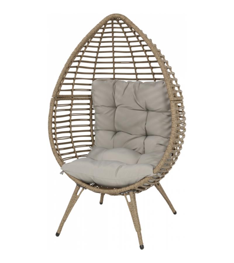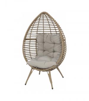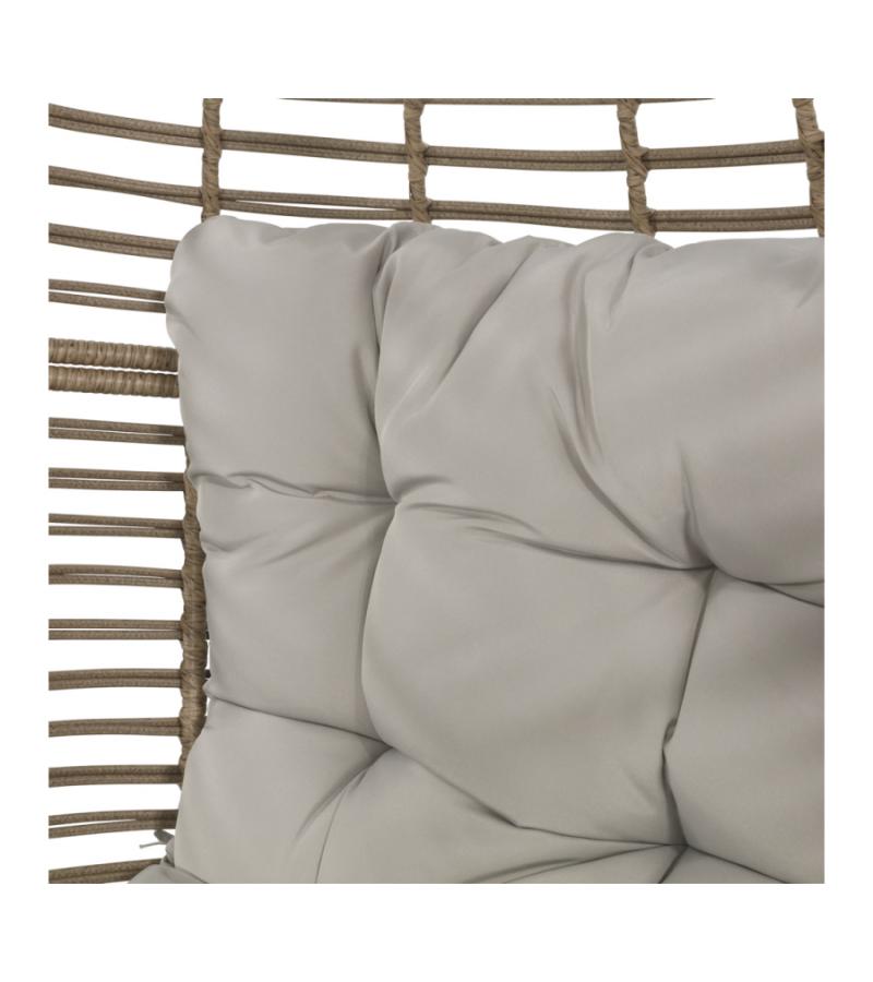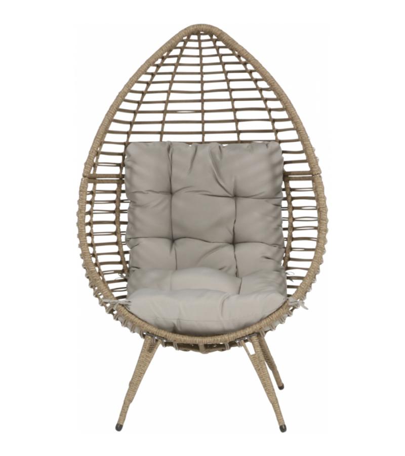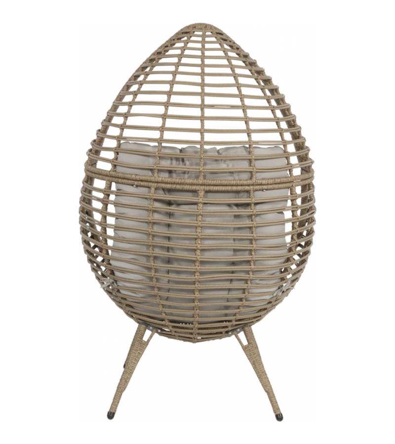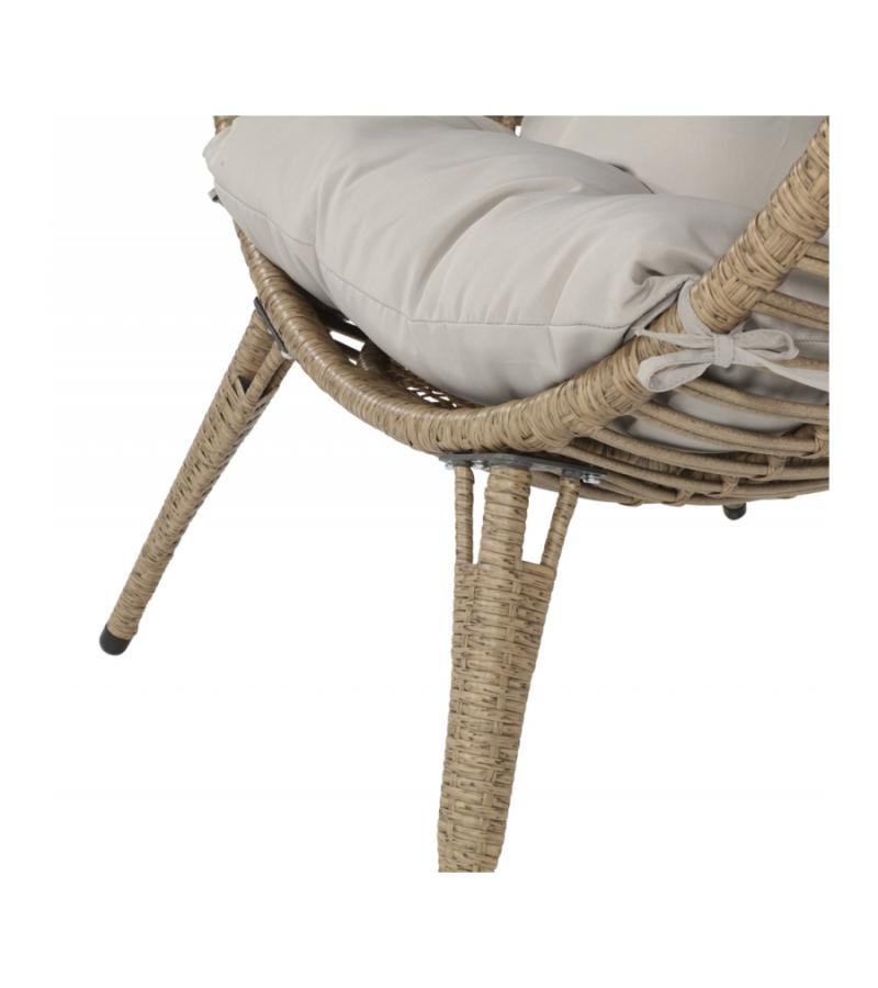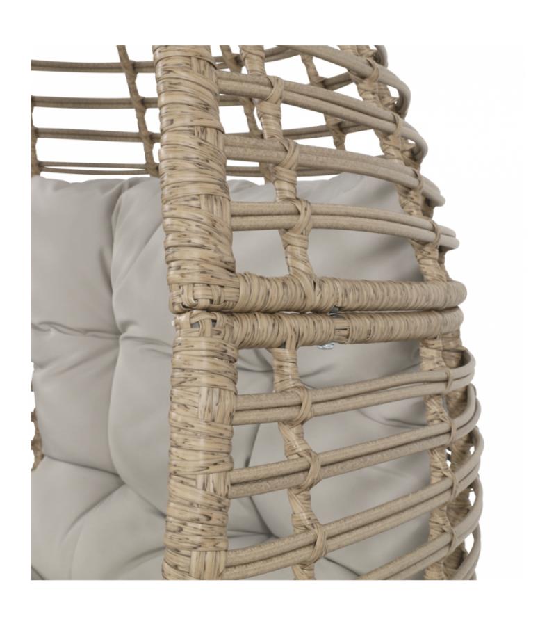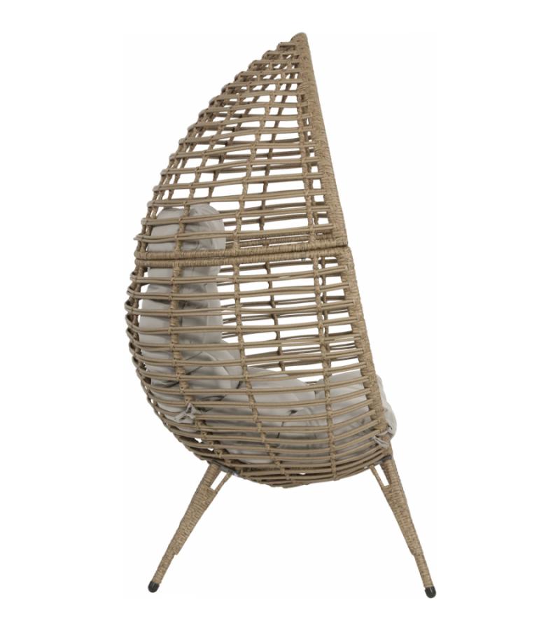 Een grote opvallende stoel trekt direct de aandacht in de ruimte. Zo ook deze egg stoel. Zijn naam heeft deze naturel kleurige stoel te danken aan zijn eivormige design. Met een egg stoel heb je een plekje voor jezelf waar je jezelf even kunt afsluiten. Hoewel deze stoel prachtig staat op een mooi plaatsje in de tuin, is het ook een geweldig exemplaar in een serre of op de veranda waar u even ongestoord kunt genieten van tijd voor uzelf. Het stalen frame is omwikkeld met het duurzame en onderhoudsarme wicker waardoor u zeer veel jaren plezier kunt hebben van deze stoel. De beige kussens zijn dik en comfortabel om uw relaxmoment compleet te maken.