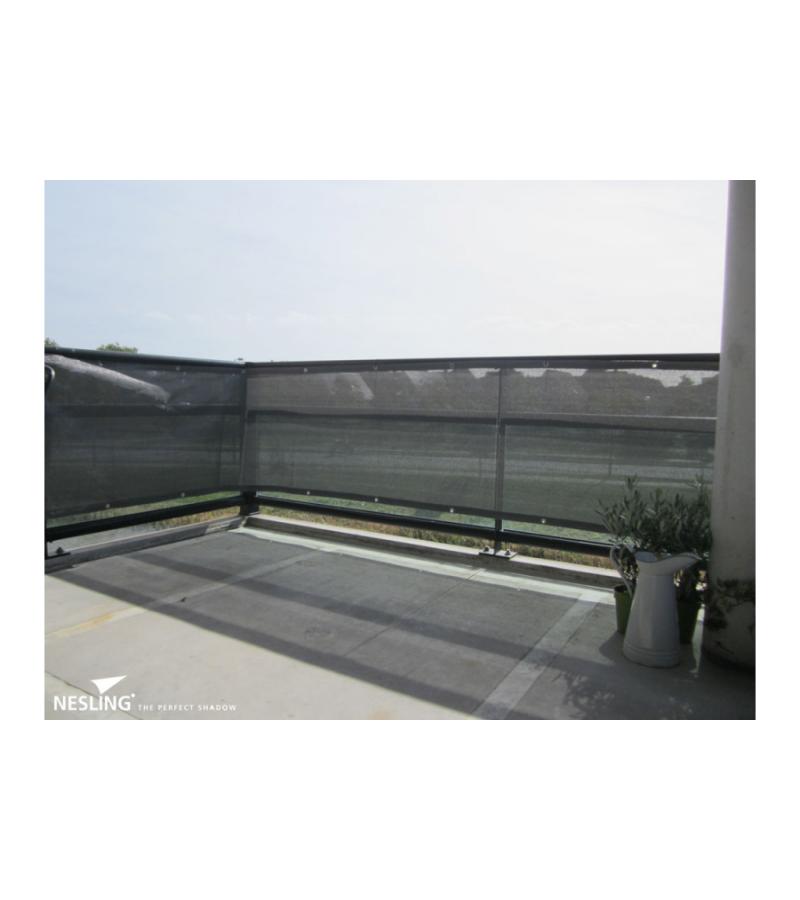 Het Nesling balkondoek is gemaakt van stevig materiaal en is voorzien van versterkte banden aan de randen. In deze versterkte banden zit om de 50 centimeter een bevestigingsring waarmee u het balkondoek eenvoudig aan uw balkon kunt bevestigingen. Het balkondoek heeft een donkere kleur welke mooi staat op ieder terras, het balkondoek is ook verkrijgbaar in de kleuren zand en gebroken wit. Geniet optimaal van de zomer met het Nesling balkondoek 80x500 cm antraciet!