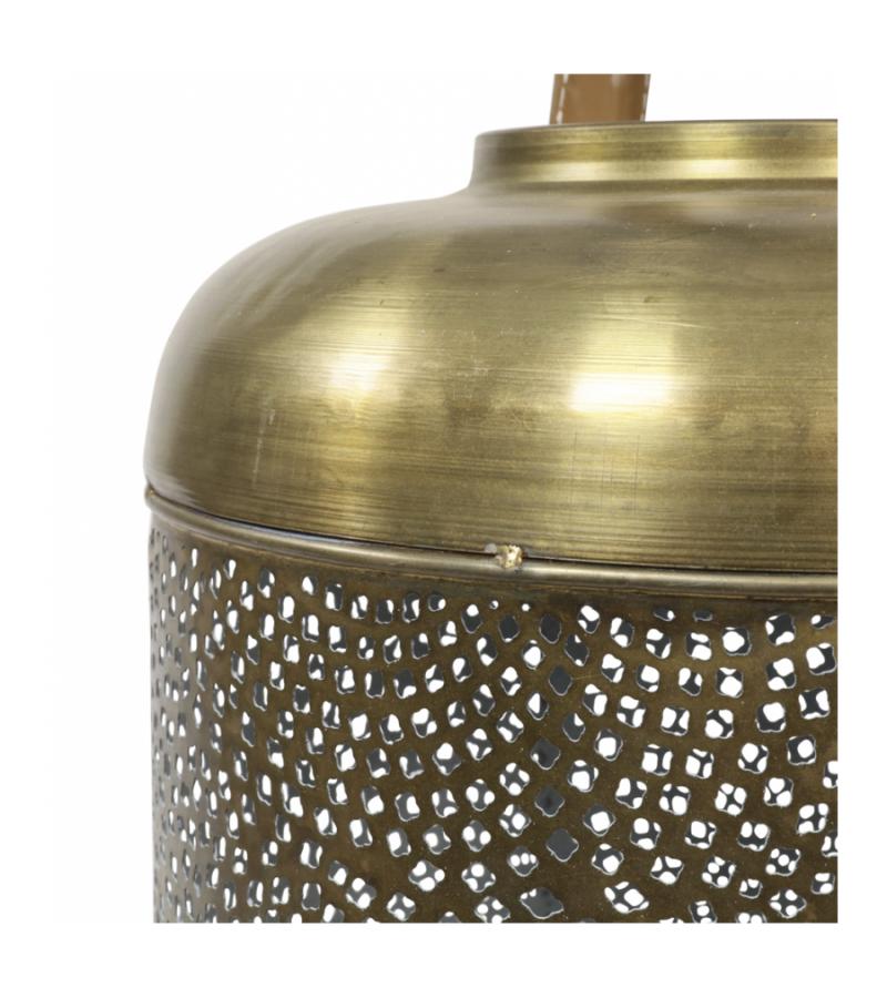 Deze lantaarn lijkt rechtstreeks uit het sprookje 1001 nacht te komen. Het lederlook handvat verklapt echter dat het hier om een modern jasje gaat. De koper kleurige lantaarn is afgewerkt met een geweldig motief wat een mooi effect geeft als een kaars in de kandelaar staat te branden. Een lantaarn is een sfeervol accessoire en brengt warmte en sfeer in huis. Zet 2 lantaarns van dezelfde grootte bij elkaar of combineer de lantaarn juist met een kleiner exemplaar voor een mooi geheel.