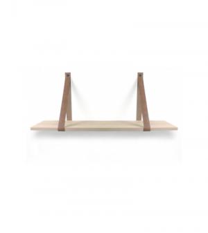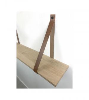 Eiken 18mm wandplank recht 120 x 30 cm inclusief leren riemen cognac