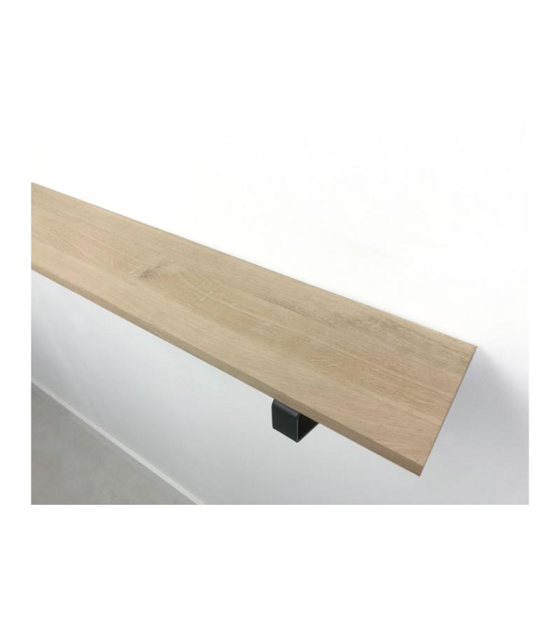 Eiken 18mm wandplank recht 150 cm op 30 cm diepe plankdragers