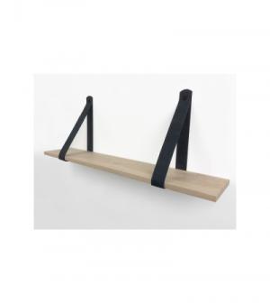Eiken 18mm wandplank recht 150 x 20 cm inclusief leren riemen zwart