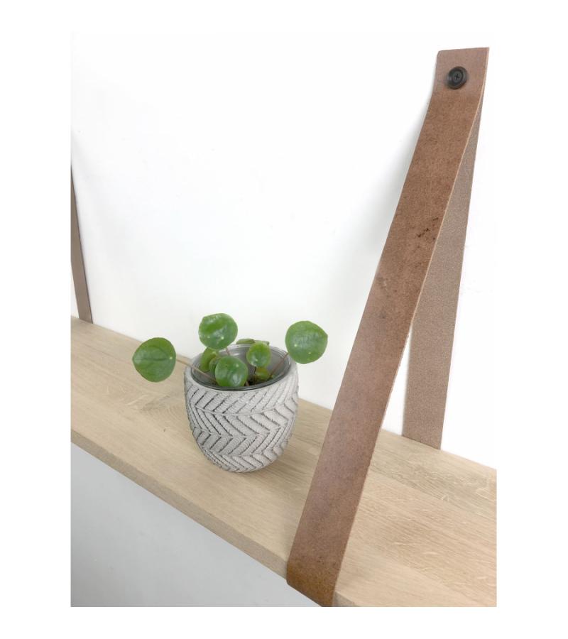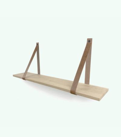 Eiken 18mm wandplank recht 60 x 30 cm inclusief leren riemen cognac
