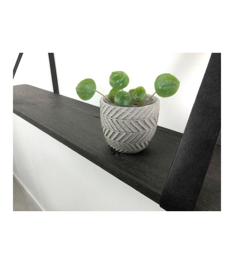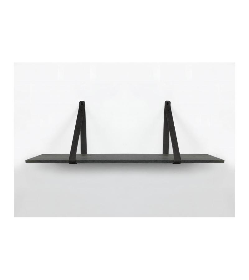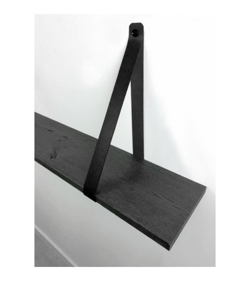 Eiken 18mm wandplank recht zwart 100 x 20 cm inclusief leren riemen zwart