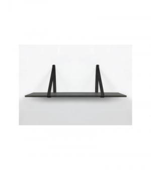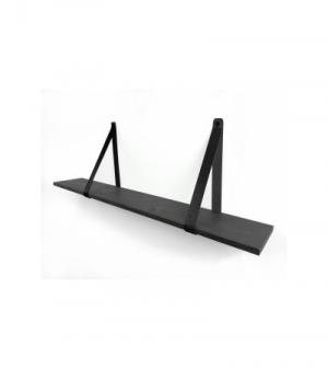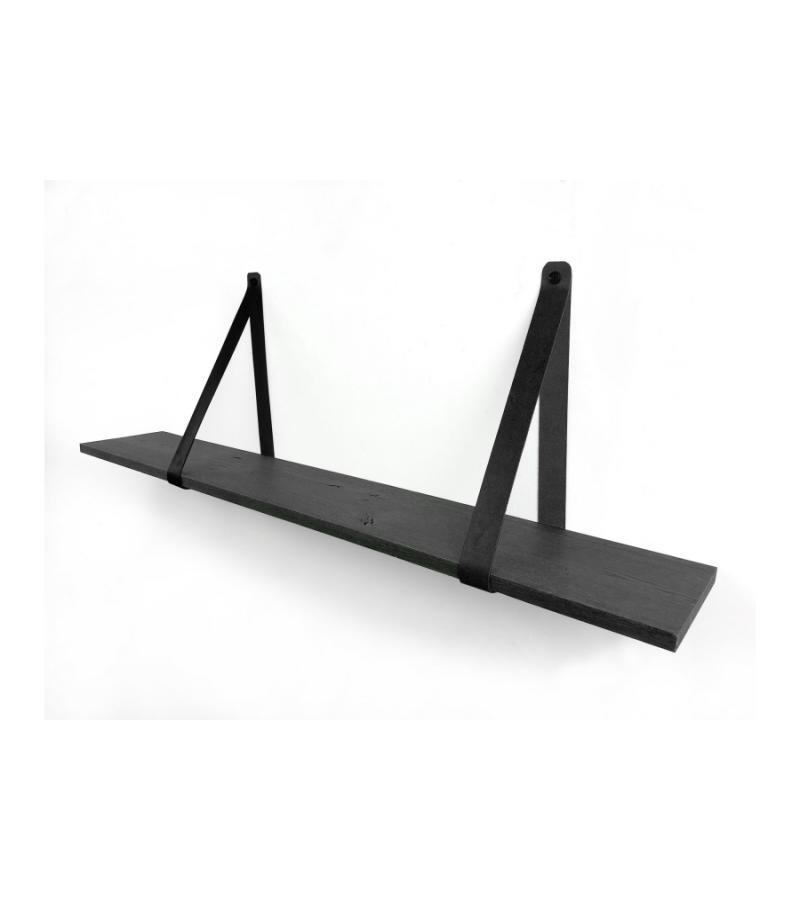 Eiken 18mm wandplank recht zwart 150 x 20 cm inclusief leren riemen zwart