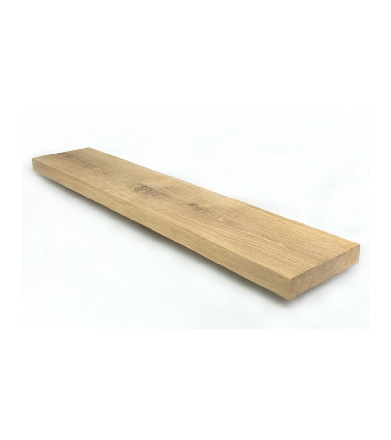 Deze gladgeschuurde massieve plank van eikenhout is aan de voorzijde strak afgewerkt met een recht gezaagd vooraanzicht.