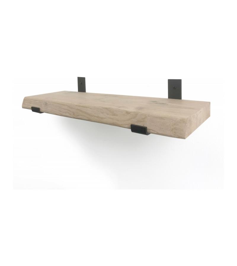 Eiken wandplank boomkant 120 cm in 20 cm diepe industriele plankdragers