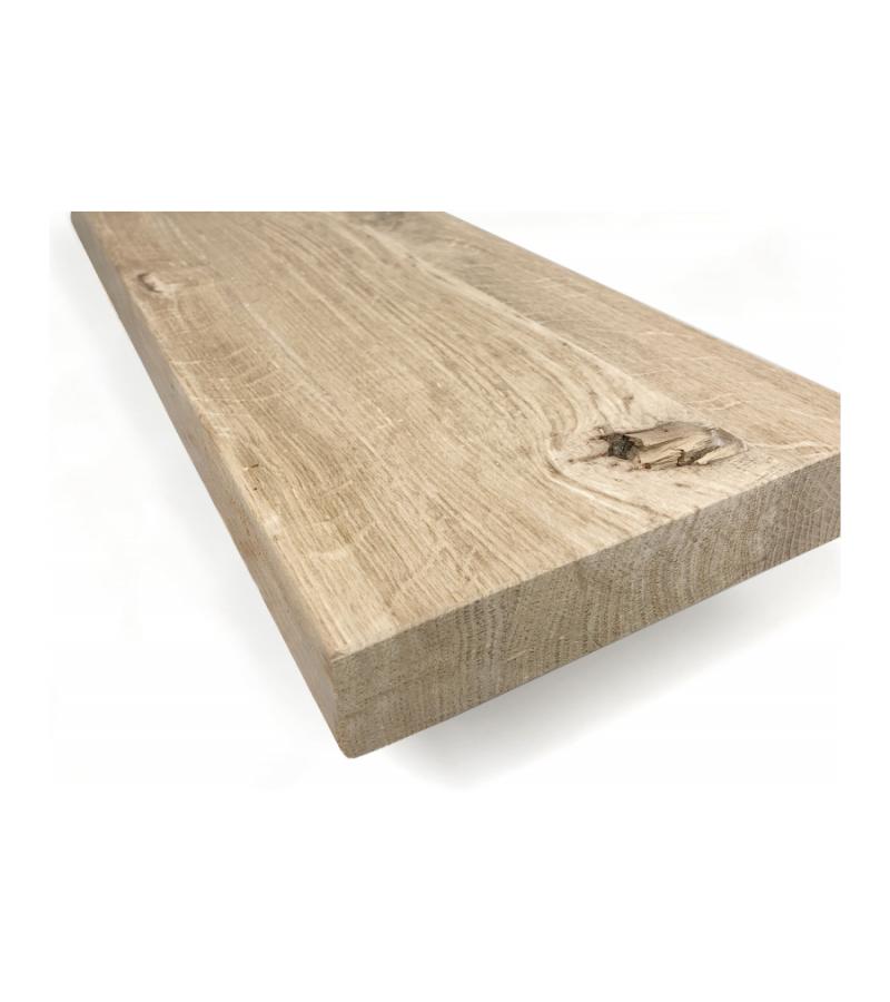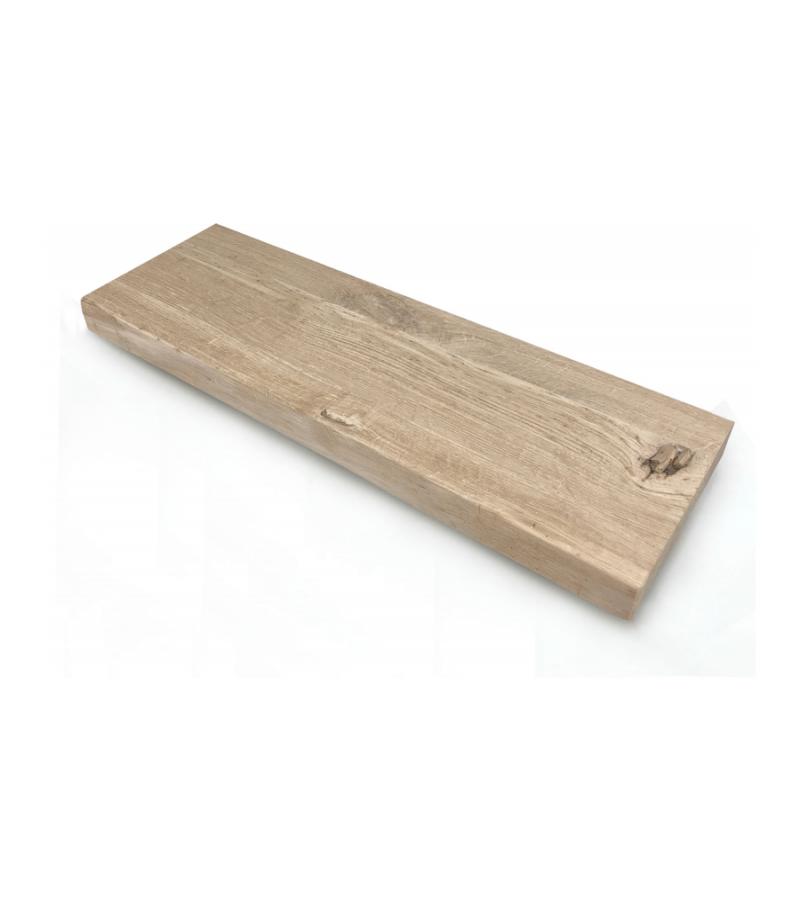 Deze eikenhouten plank van oud hout met recht afgezaagd vooraanzicht past bij iedere woonstijl. Oud eikenhout vertoont meer groeven dan massief eiken, het is een geleefde plank. Dit hout krijgt een nieuw leven door het te gebruiken voor de zwevende wandplank van oud eiken. Oud eiken heeft een karakteristieke uitstraling met hier en daar wat meer scheurvorming of de afdruk van knoesten.