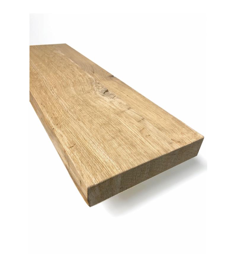 Deze eikenhouten plank van oud hout met recht afgezaagd vooraanzicht past bij iedere woonstijl. Oud eikenhout vertoont meer groeven dan massief eiken, het is een geleefde plank. Dit hout krijgt een nieuw leven door het te gebruiken voor de zwevende wandplank van oud eiken. Oud eiken heeft een karakteristieke uitstraling met hier en daar wat meer scheurvorming of de afdruk van knoesten.