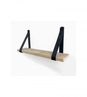 Steigerhout wandplank gebruikt 120 x 20 cm inclusief leren riemen zwart