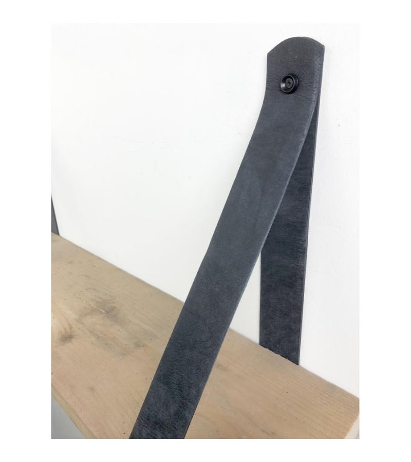 Steigerhout wandplank gebruikt 80 x 20 cm inclusief leren riemen antraciet