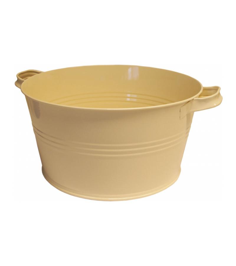 De neutrale ivoorkleur van deze zinken teil komt prachtig uit tussen het groen in uw tuin. Creëer een sfeervol hoekje met overige ivoorkleurige artikelen uit deze metalen serie zoals een gieter en de waterkan.